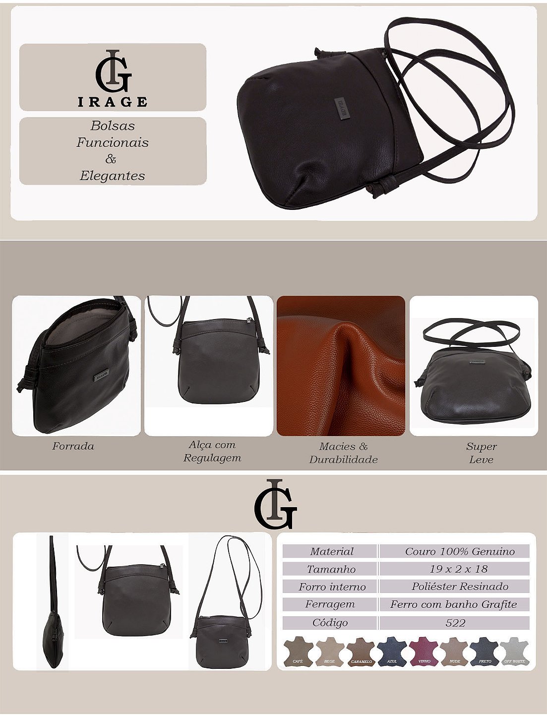 ALÇA TRANSVERSAL EM COURO 100% LEGÍTIMO
