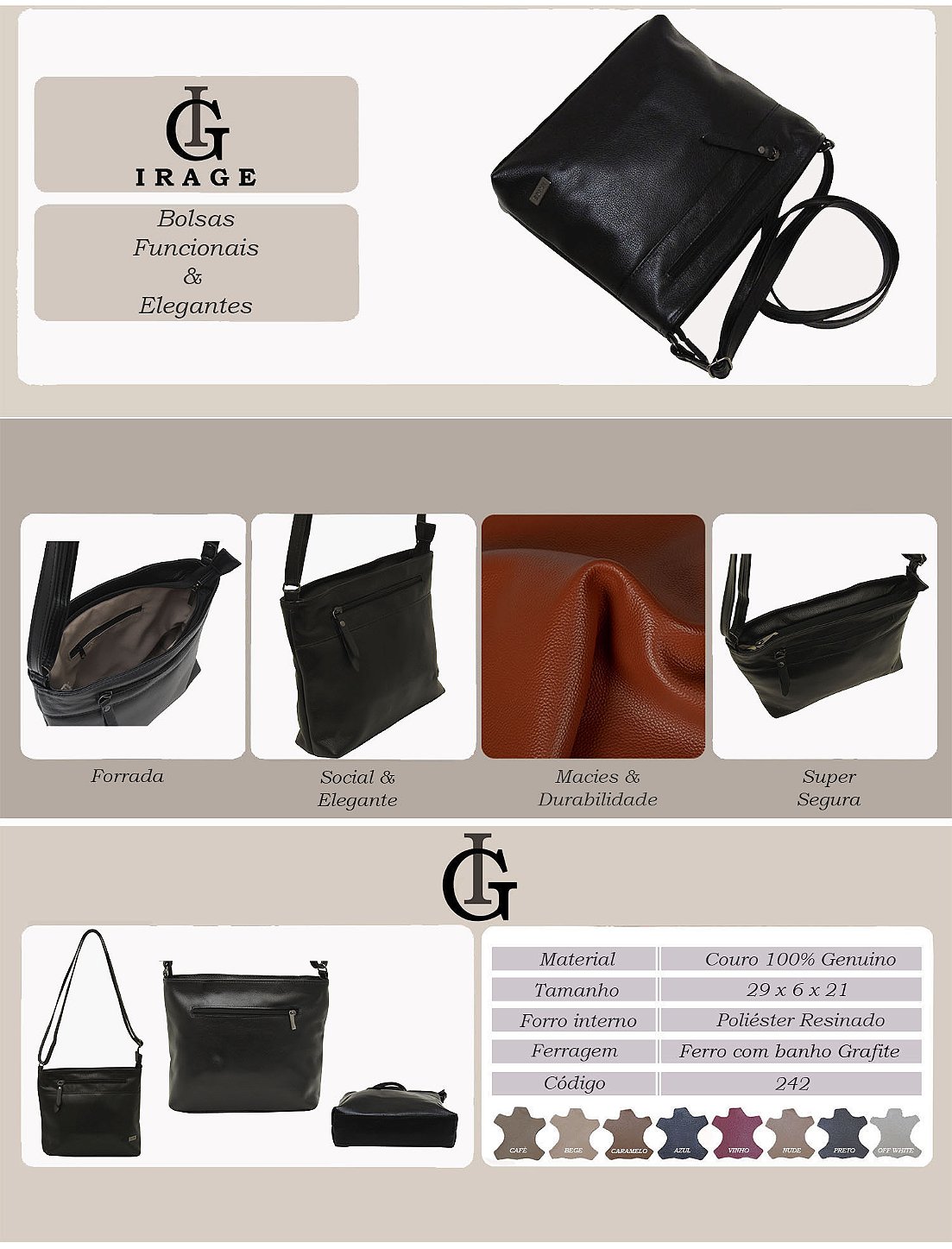 BOLSA FEMININA TRANSVERSAL COM TAMPA FRONTAL EM COURO 100% LEGÍTIMO