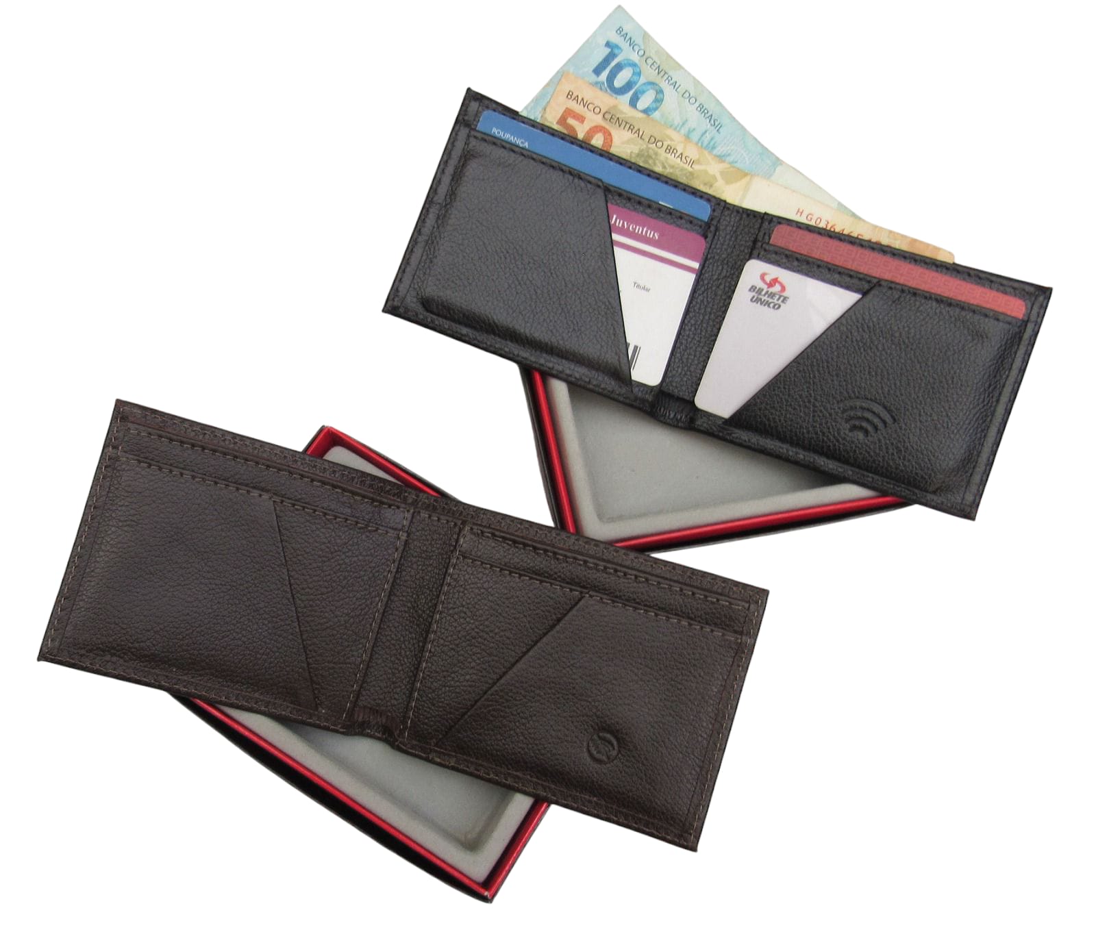 CARTEIRA SLIM EM COURO LEGÍTIMO ANTI-FUTO