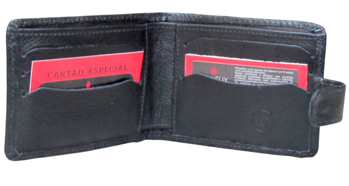 CARTEIRA MASCULINA COM FECHO COM PROTEÇÃO ANTI FURTO EM COURO LEGÍTIMO BRAVELLY